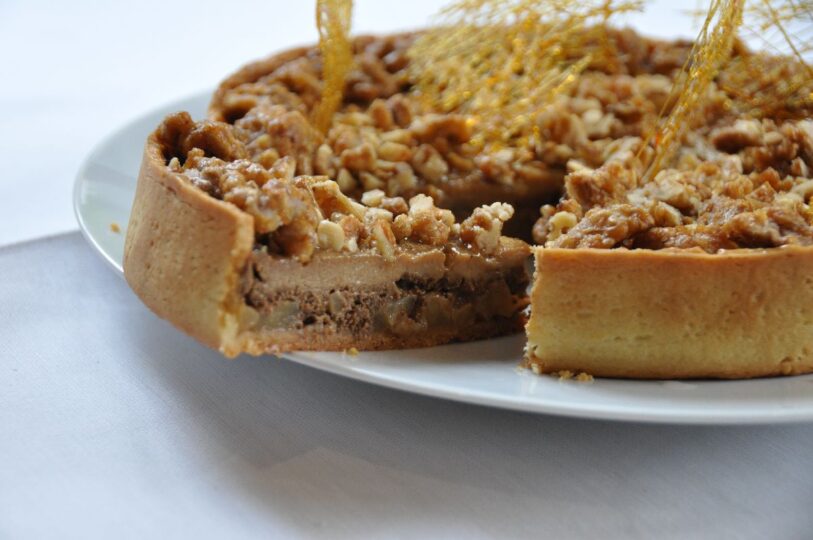 Découvrez une version plus élaborée de la tarte au nillon de noix proposée par Stéphane Décotterd : « La Tarte au Nillon de Noix et Pommes Caramélisées »